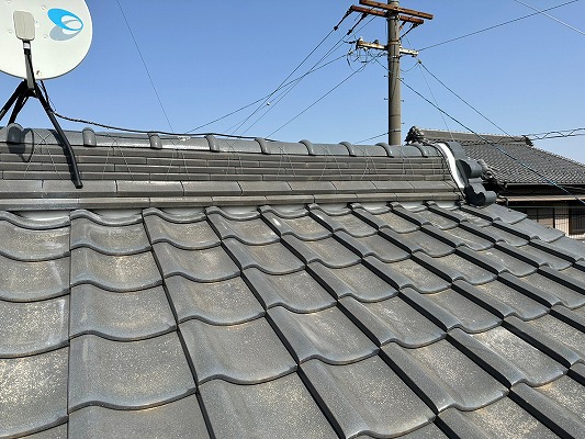 瓦止めビス補修、筒瓦積み直し(紐丸)、雨樋破損部補修
