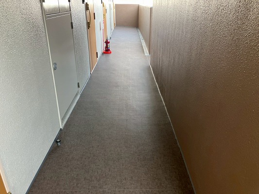 | 塗料の種類 | 外壁塗装タイル部 タイルセラクリーン (セラミック浸透性吸水防止材) 外壁塗装RC部 サンフロンアクア (フッ素樹脂) 屋上防水 階段上部防水 新規ゴムシート防水 共用部階段及び通路・ベランダ 側溝巾木ササラ防水 ウレタン塗膜防水 (密着工法) 共用部階段及び通路長尺シート張り ベランダ長尺シート張り ビュージスタラティスシート張り ビュージスタVLTステップシート貼り |