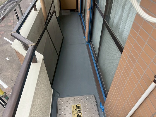 | 塗料の種類 | 外壁塗装RC部 スマイルガードSi (シリコン樹脂) 外壁塗装タイル部 タイルセラクリーン (セラミック浸透性吸水防止材) 屋根防水 ウレタン塗膜防水 (密着工法Zero-1仕様) 通路庇上部防水 ベランダ庇上部防水 ウレタン塗膜防水 (通気緩衝工法) (密着工法) 階段上部防水 ベランダ防水 サッシ小庇防水 ウレタン塗膜防水 (密着工法) |
