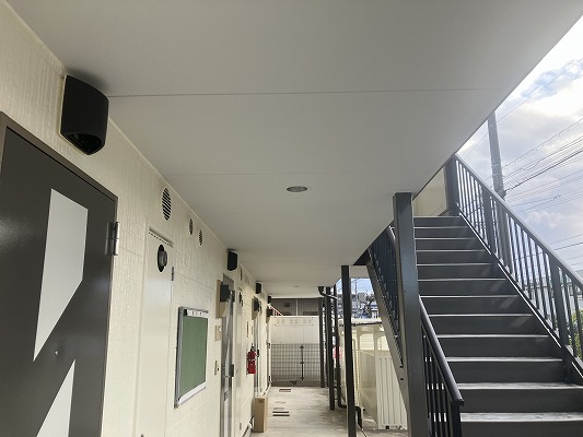 軒天・間仕切り・避難ステッカー貼付・雨樋・破風板・鼻隠し