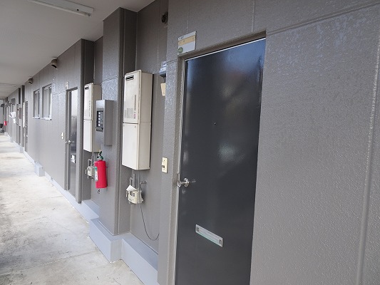 軒天・間仕切り・避難ステッカー貼り・雨樋・玄関扉