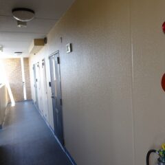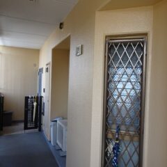 軒天・間仕切り・避難ステッカー貼り・雨樋・玄関扉枠